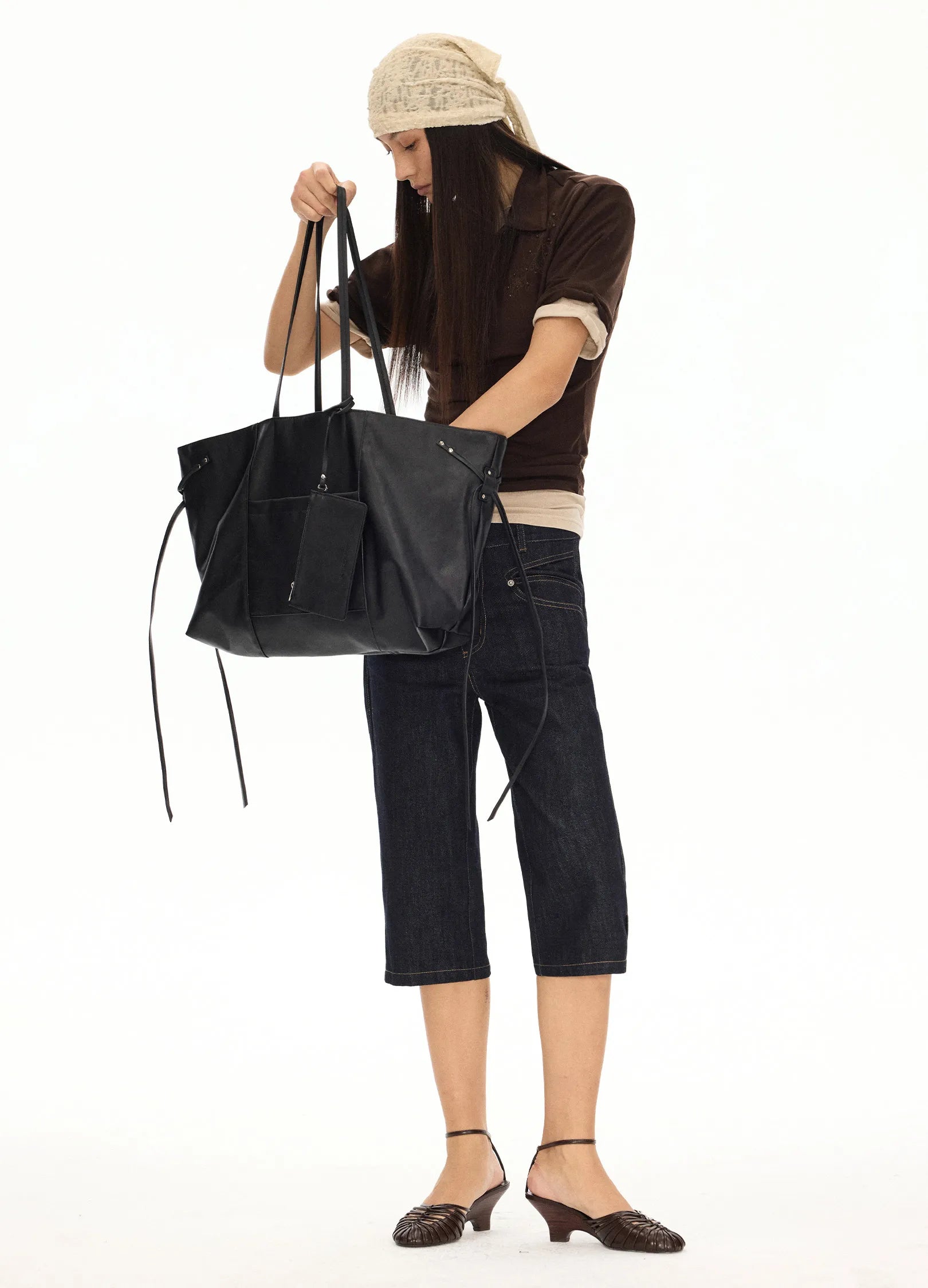 Carved out leaf shape front pocket design