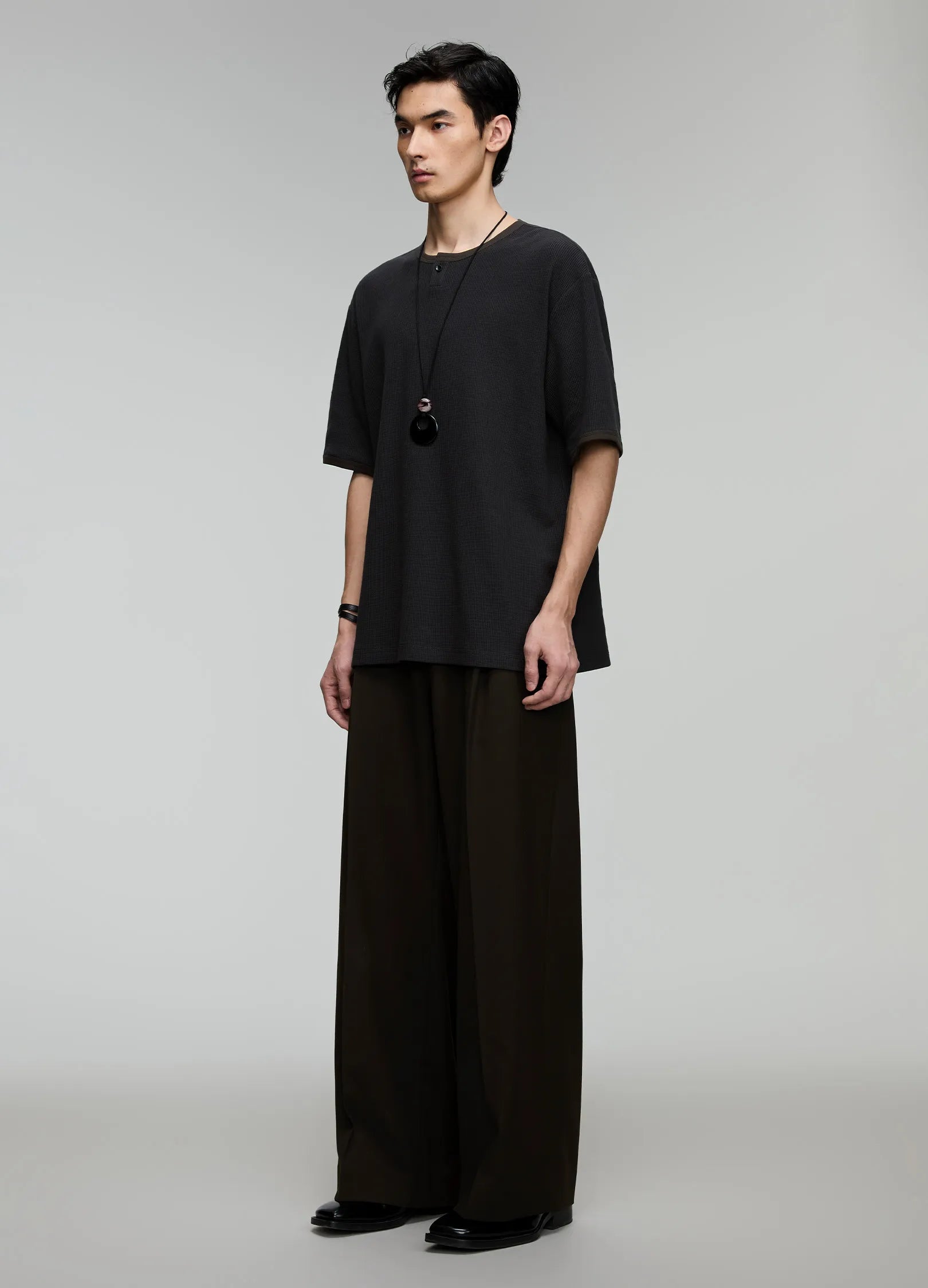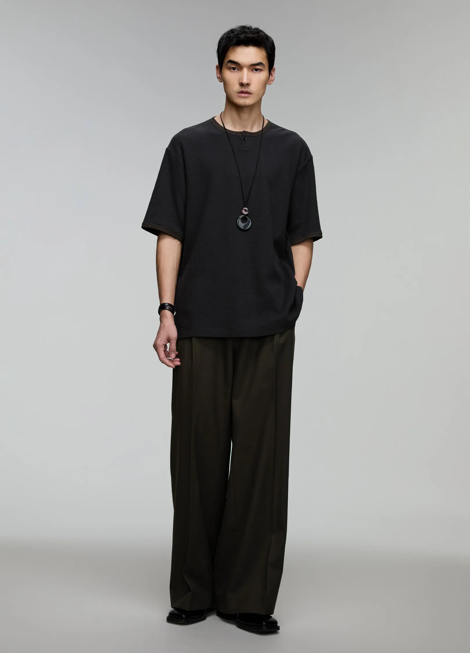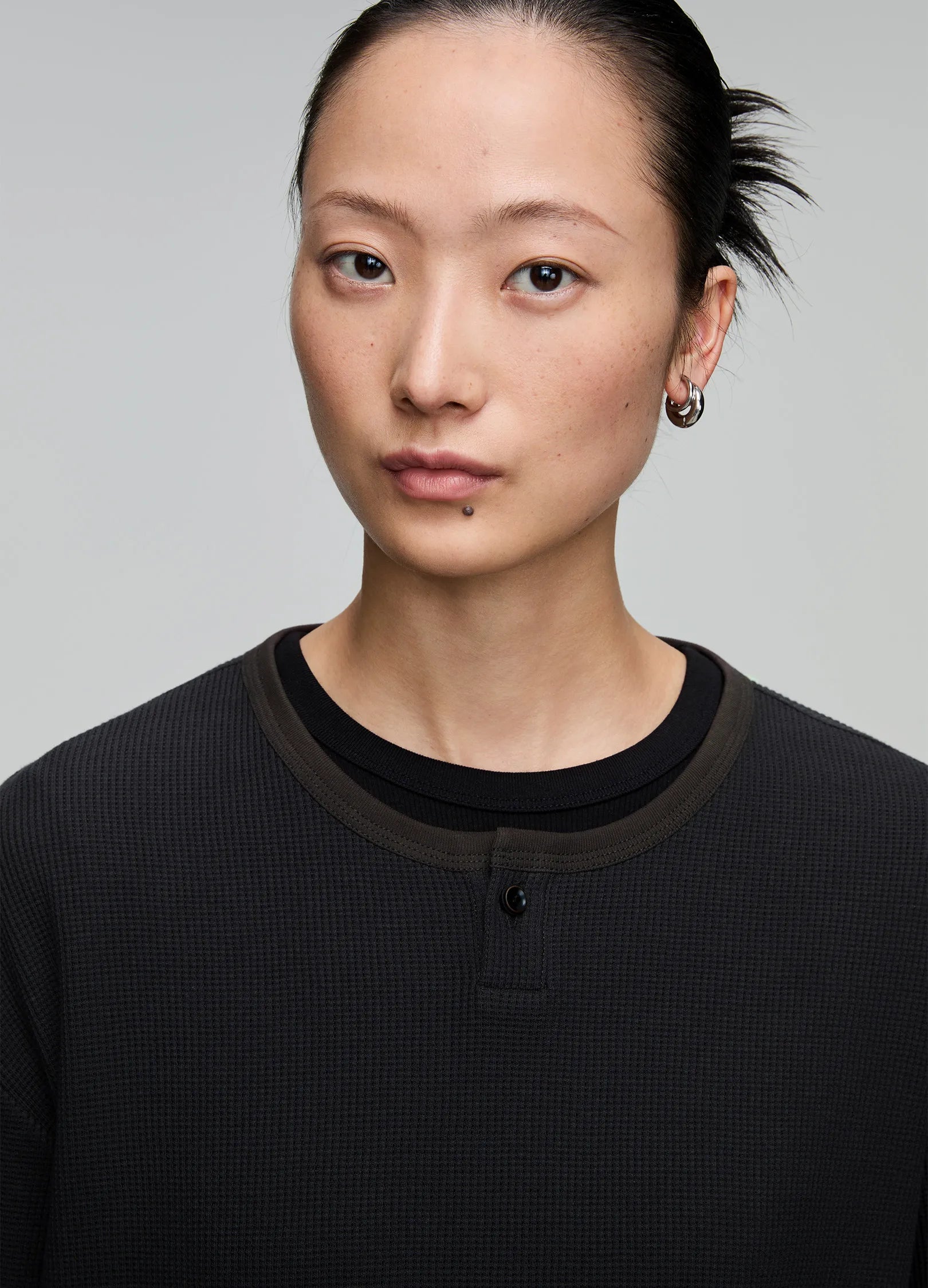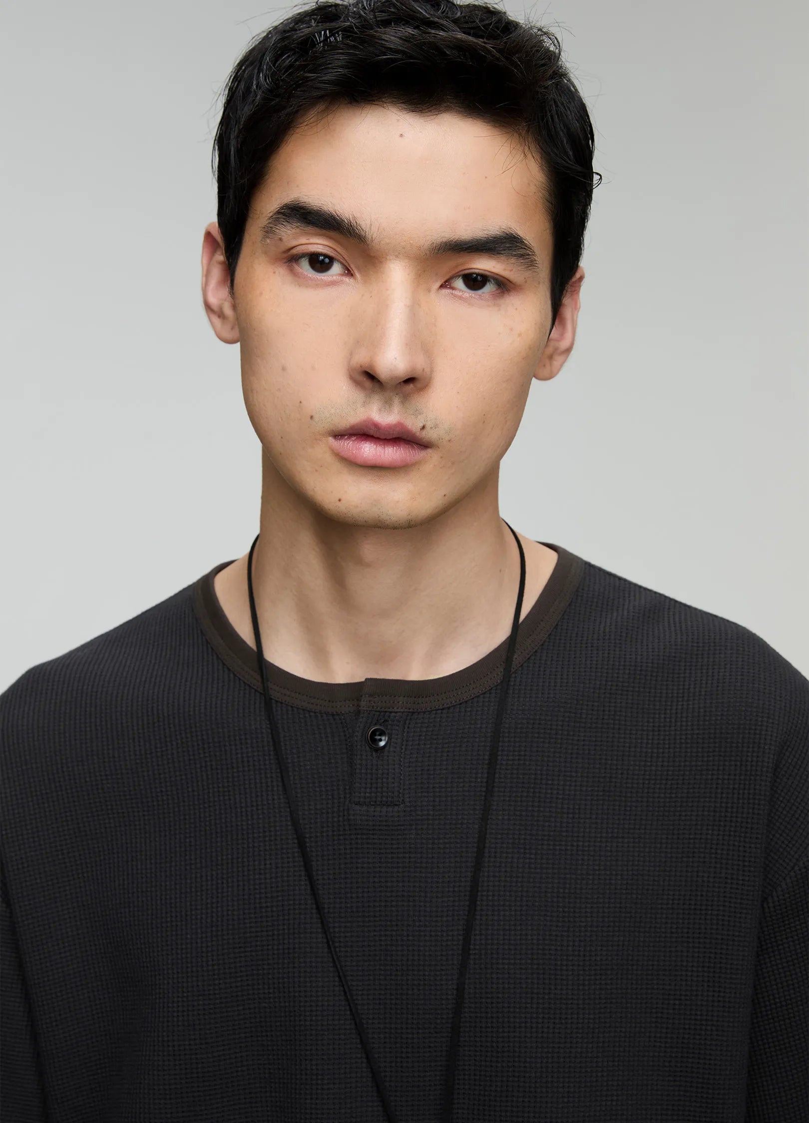 Single-button Henley collar